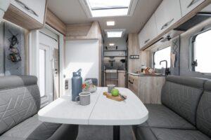 Xturaの車内では、旅路にあなただけの世界を携えていきます。明るい親しみやすい内装はシャレーオーク調で、スタイリッシュかつ実用的なフェルトポケットがあなたのための心地よい空間を創り出します。キッチンでは、マットブラックの設備と引き出し前面にエレガントに組み込まれたタオル掛けなどの実用的なディテールが目を引き、ガスとIHを組み合わせたコンロも印象的です。温水暖房システムで完璧な快適な温度を調節でき、床まで心地よい温もりを届けます。