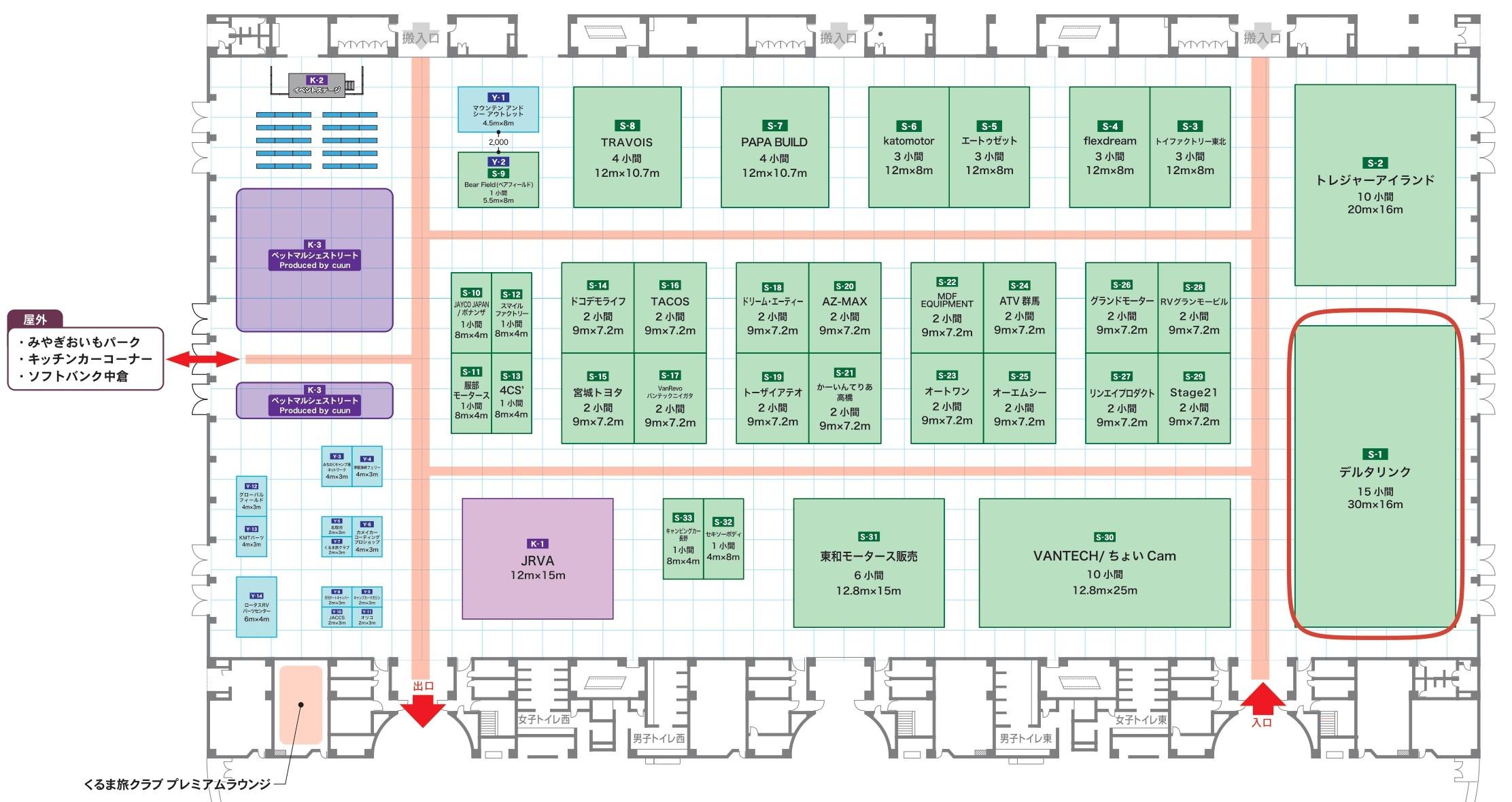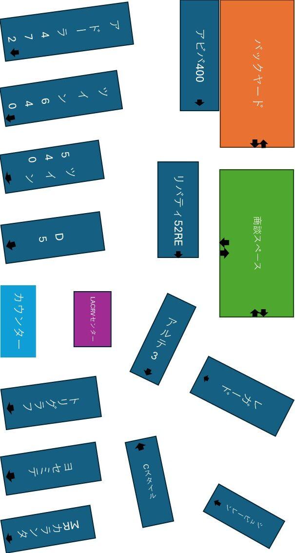 来週の今頃は朝からひっちゃかめっちゃかだろうなぁ(;^_^A 準備は順調!今年はテーブルもイスも新調しました♬私が宮城に赴任して9年、それ以前からあった物なのでもう減価償却しましたよね(笑)イスの座り心地も抜群です!さて、毎回キャンピングカーショーで出展をしてますが、来店されるお客様からは「え?出てた?どこに?」を連発されます( ノД`)シクシク… なのでデルタリンクブースがどこに存在するのか、どれだけ出展しているのかが解るように図面を添付しました!!しっかり記憶に焼き付けて下さい(≧▽≦) 入場してすぐ右手が「デルタリンク」です、その広いスペースに13台も展示してます。こんな感じのレイアウトです!