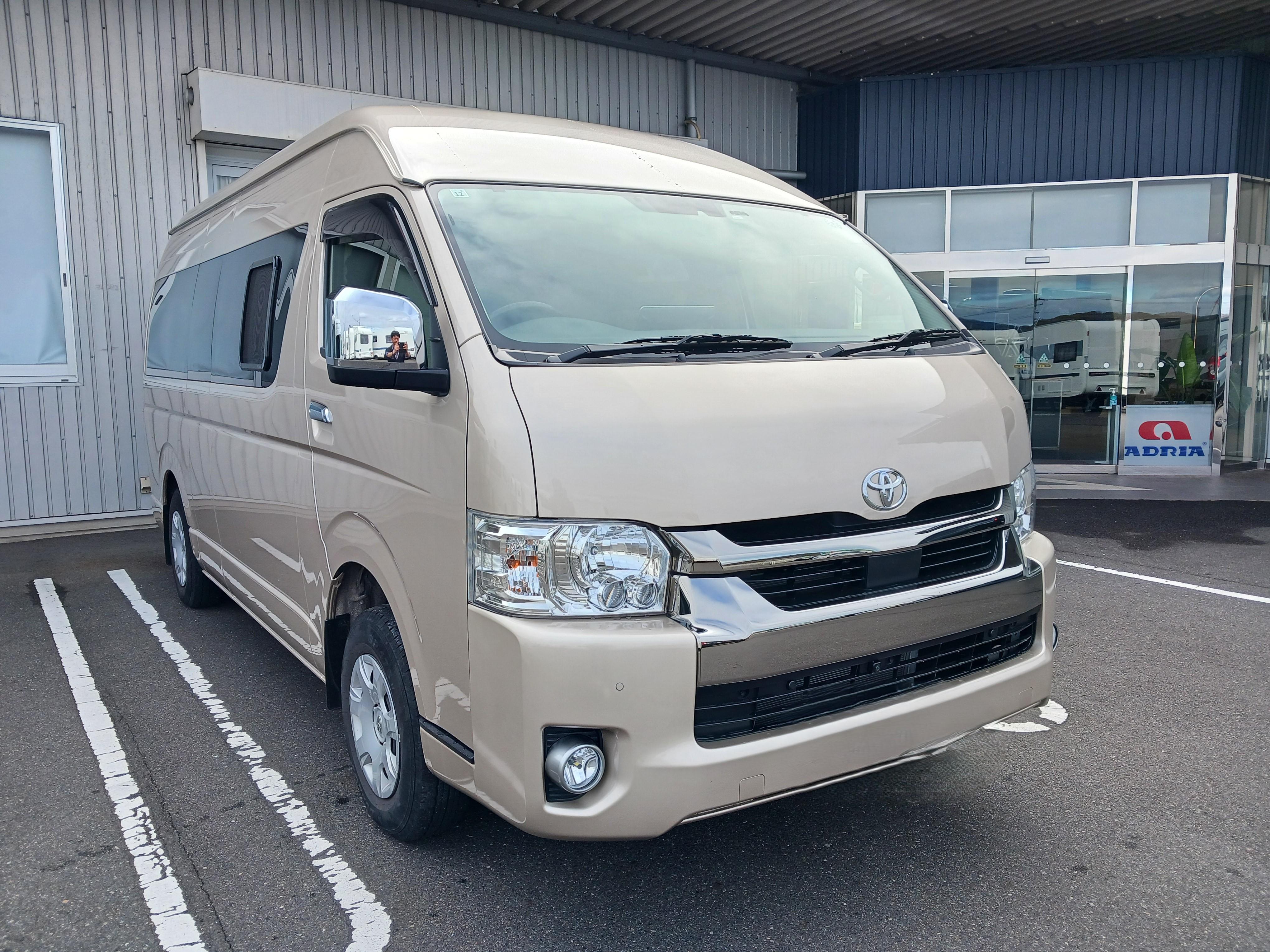 ハイエースグランドキャビン中古車入荷しました。中は広々と就寝スペースにもちょっとしたミーティングスペースになる1台です。後部扉あけていただくとシャワーもついており、夏場に足が汚れたときにも流せるようになっています。走行距離は13,000Kmとまだまだ乗れる元気な車両です。スペースが広いため追加オプション(有料)があればご相談承りますのでお気軽にご相談ください。まずは1度ご来店で車両を見ていただければ幸いです。スタッフ一同お待ちしております。