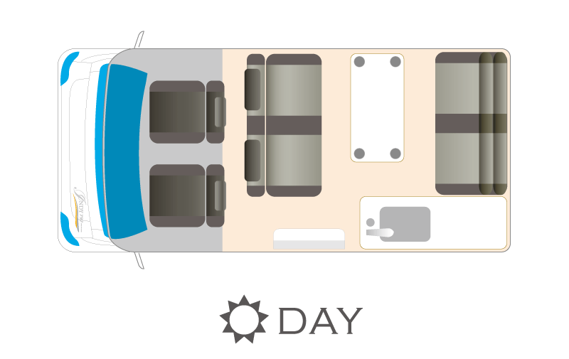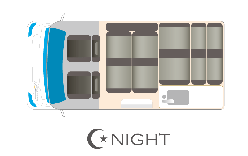 - 後部左右丸型アクリル二重窓(カーテン付)